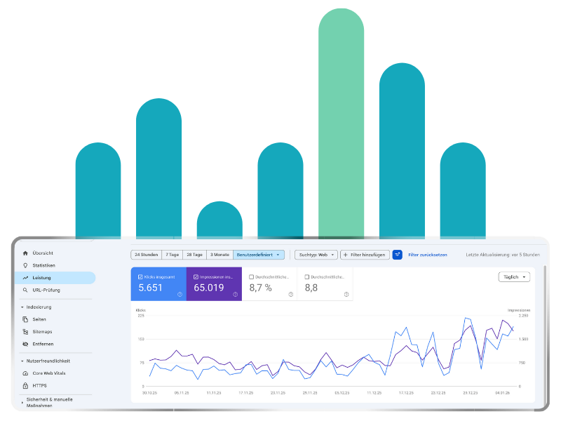 Livegang, Indexierung/SEO-Basis und Messbarkeit. Auf Wunsch begleiten wir Sie langfristig beim Ausbau (Conversion, Inhalte, Kampagnen).